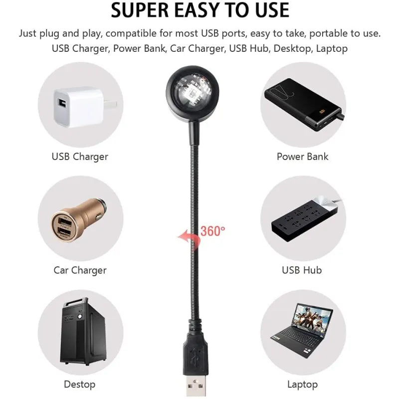 Any USB port works — your laptop, wall adapter, power bank, or TV. If it has a USB port, you're good to glow.